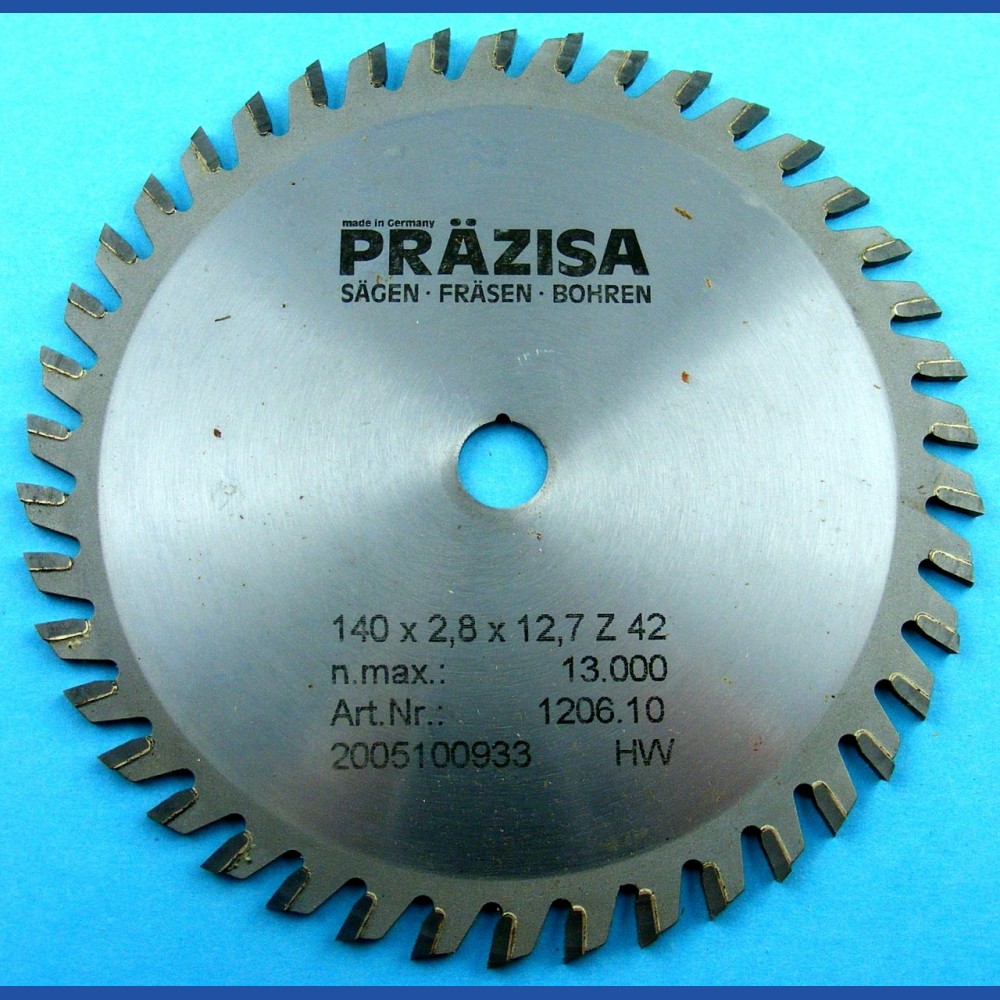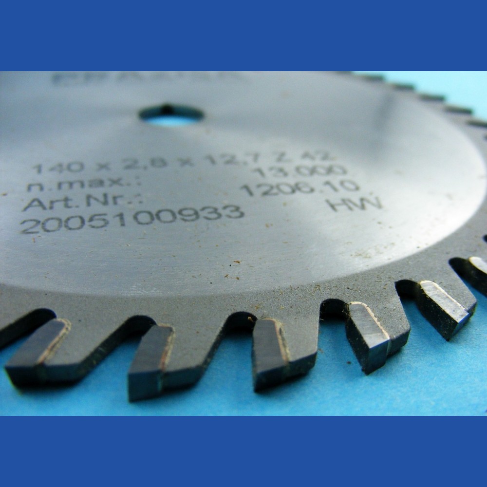Schnittbreite 2,8 mm Stammblattstärke 1,8 mm 42 Zähne, Wechselzahn Spanwinkel 8°, Freiwinkel 15° max. 13.000 UPM...