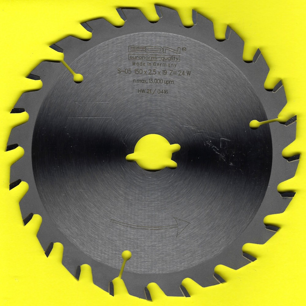 Für den Bohrungsdurchmesser 19 mm (3/4'') habe ich Reduzierringe für 20 und 30 mm-Bohrungen im Programm, sofern die Keilnuten nicht erforderlich sein sollten, haben Sie im Ø 150 mm mit 20 oder 30 mm-Bohrung eine noch erheblich größere Auswahl. Eine Alternative mit den 3 Keilnuten sind die etwas kleineren Kreissägeblätter im Ø 143 mm, die Schnitt-Tiefe ist damit 4 mm geringer!