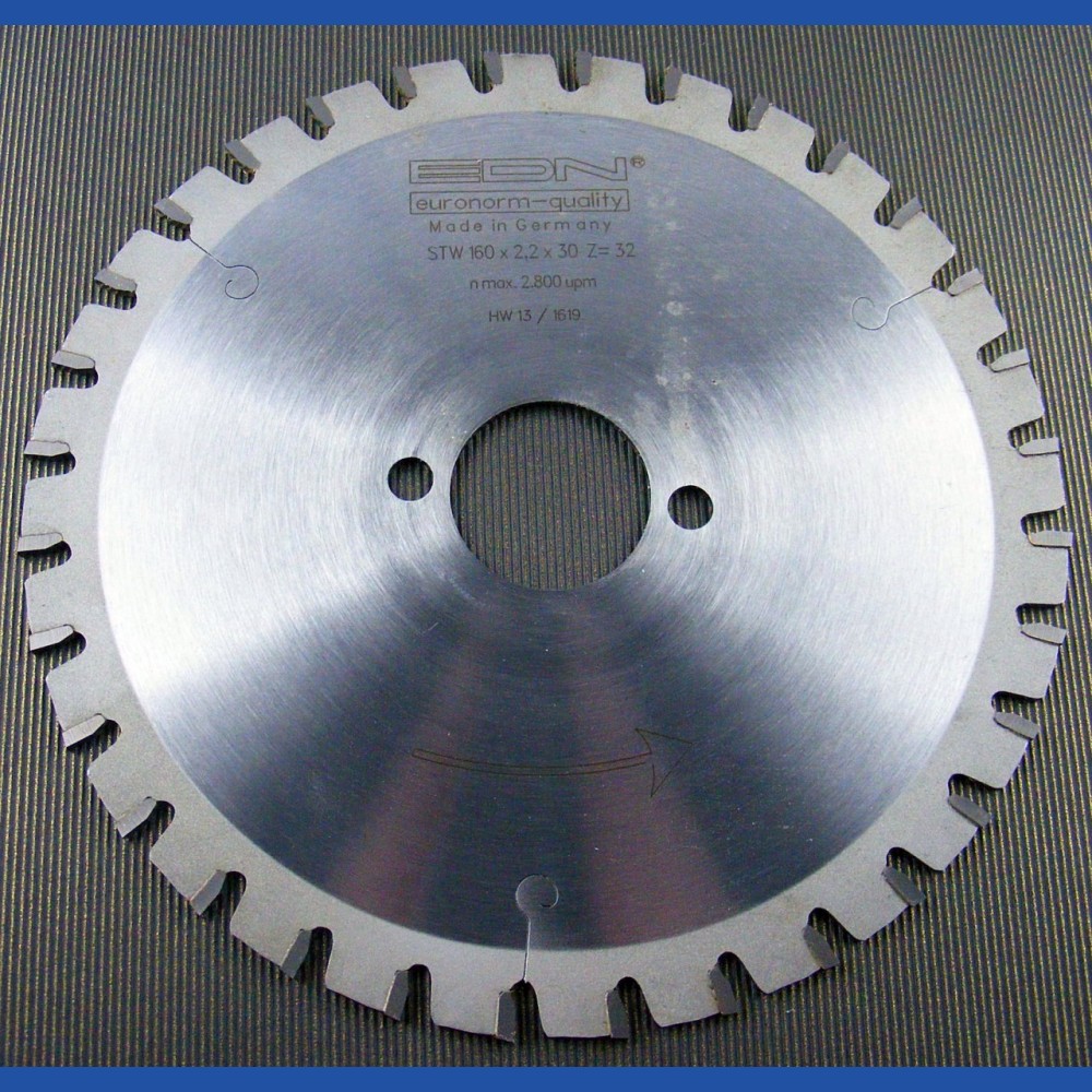 Schnittbreite 2,2 mm 32 Zähne, Wechselzahn mit Fase Spanwinkel 3°, Freiwinkel 8° max. 2.800 UPM + für den Einsatz auf Kappsägen...