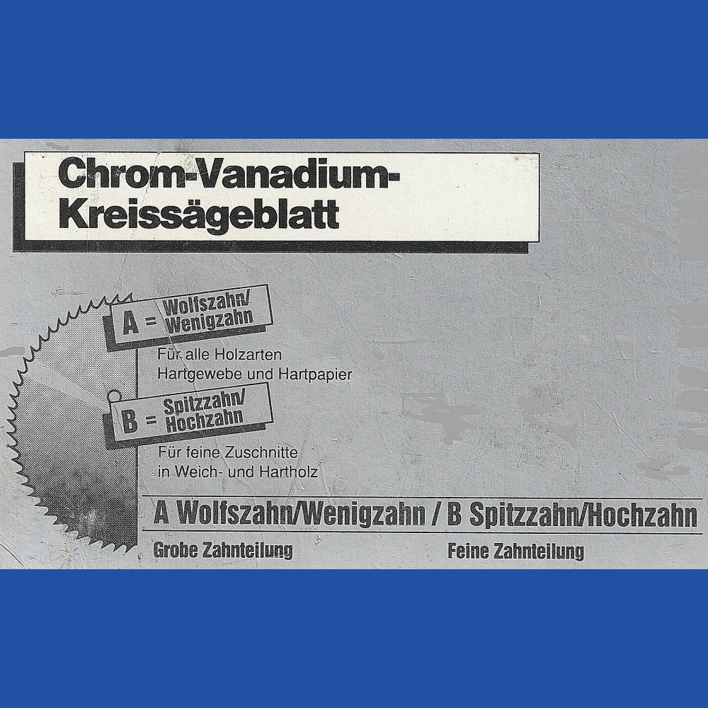 Modernste Fertigungsverfahren bei der Verzahnung, Schärfung und Schränkung bieten beim sehr preiswerten PRÄZISA Jännsch Chrom-Vanadium Kreissägeblatt Garantie für höchste Qualität, einwandfreien Schnitt und lange Lebensdauer. Bei den von mir zur Zeit angebotenen Sägeblättern mit je nach Durchmesser 80 bis 112 wechselseitig geschränkten Spitzzähnen handelt es sich um die Type B, die sich vor allem für feine Zuschnitte in Weichholz längs und quer zum Faserverlauf eignet, speziell auch für Bastelarbeiten! Im Durchmesser 150 mm mit 19 mm-Bohrung sowie 3 Keilnuten, benötigt für einige alte Kreissägen und Kreissägevorsatzgeräte für Bohrmaschinen von AEG, die sich aber noch einiger Beliebtheit erfreuen, habe ich solange der Vorrat reicht auch die Type A in antihaftbeschichteter Ausführung im Angebot, deren 32 wechselseitig geschränkte, umempfindliche Wolfszähne sich für grobe Zuschnitte und auch zum Sägen von Brennholz eignen.
