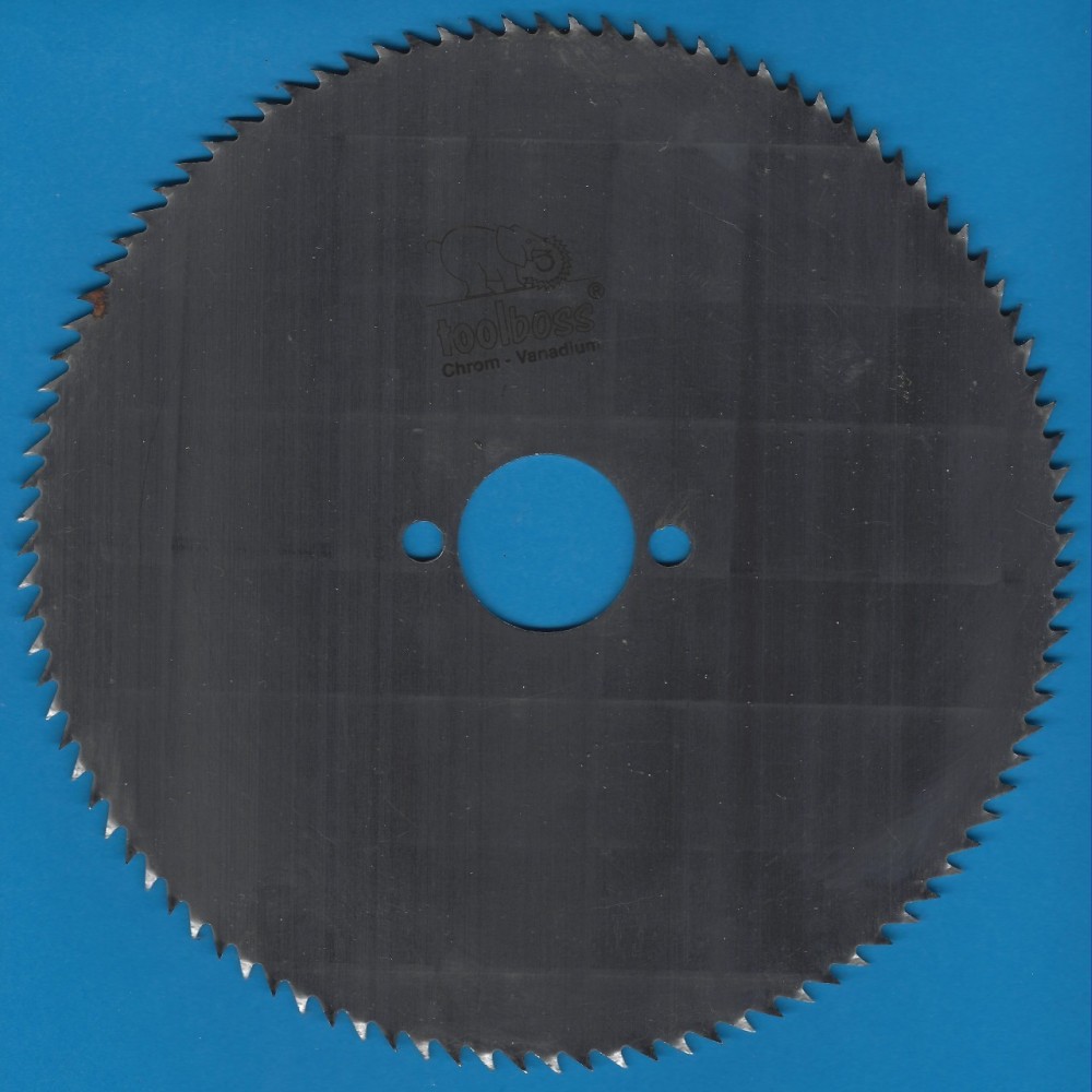 Die preisgünstigen toolboss Kreissägeblätter Chrom-Vanadium besitzen keine aufgelöteten Zähne, sondern bestehen komplett in einem Stück aus Chrom-Vanadium-Stahl (CV), der eine höhere Standzeit besitzt als normaler Chromstahl (CS). Chrom-Vanadium ist wesentlich robuster gegen Stöße und Schläge als das relativ spröde Hartmetall, die Sägeblätter können deshalb auch unter rauheren Einsatzbedingungen nicht so leicht beschädigt werden. Dadurch eignen sich die großen Durchmesser sehr gut zum Sägen von frischem Brennholz, in dem sich ja auch einmal Fremdkörper befinden können, wodurch Hartmetallzähne leicht beschädigt werden, während die Zähne des CV-Blatts lediglich schneller stumpf werden.
