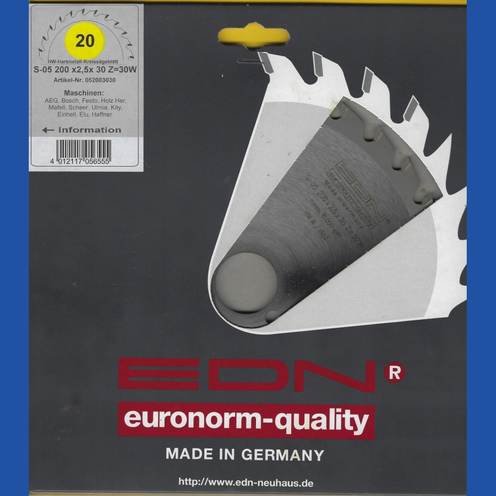 Die Ernst D. Neuhaus GmbH & Co. KG ist ein im Wuppertaler Stadtteil Cronenberg ansässiges Traditionsunternehmen, dessen Focus auf der Produktion hochwertiger Hartmetall-bestückter Kreissägeblätter für den gewerblichen Bereich liegt. Die Marke EDN steht konsequent für Qualität "Made in Germany". Aus einem kleinen Restposten kann ich Ihnen eine Reihe von Sägeblättern dieses Herstellers günstig anbieten! Außerdem nehme ich nach der Schließung von H.O. Schumacher+Sohn jetzt auch diverse Kreissägeblätter in mein reguläres Sortiment auf, liefern kann ich auf Anfrage das Gesamtprogramm (Katalog ohne Preise als PDF-Datei).