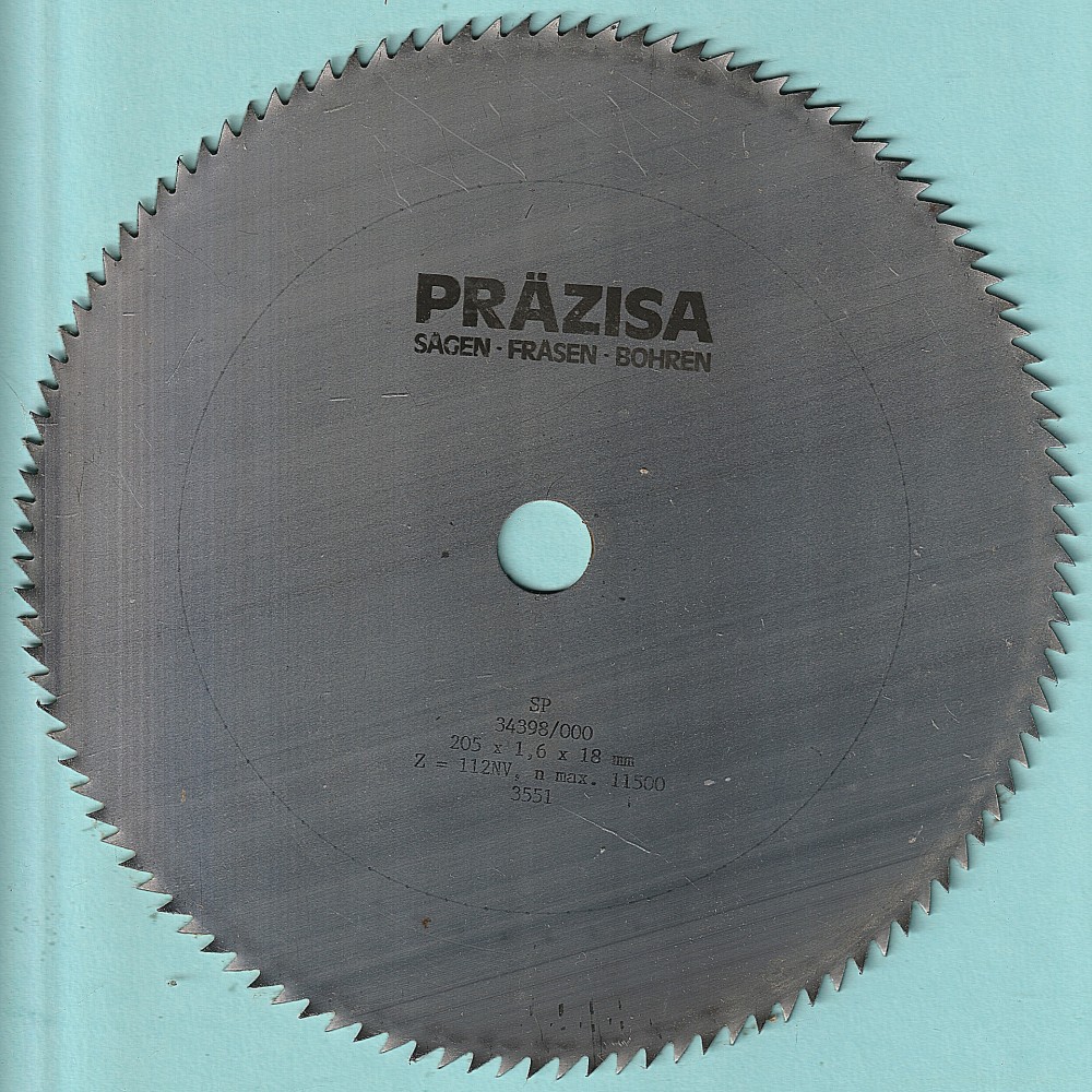 Path: > > > > > PRÄZISA Jännsch Chrom-Vanadium Kreissägeblatt Type B Feinstzahn – Ø 205 mm, Bohrung 18 mm