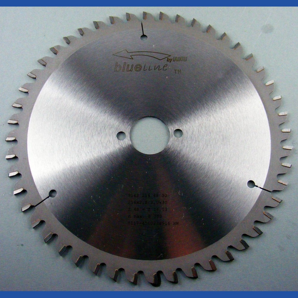 48 Zähne aus einem speziell auf diese Anwendung abgestimmten Hartmetall sorgen für eine hohe Schnittqualität und Standzeit. Dabei wechseln sich Flach- und Trapezzähne ab, zunächst schneidet die Mitte des etwas vorstehenden Trapezzahns, danach schneidet der Flachzahn die Kanten.