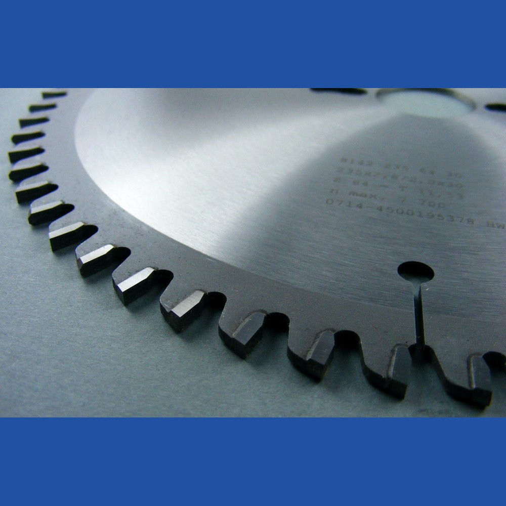 64 Zähne aus einem speziell auf diese Anwendung abgestimmten Hartmetall sorgen für eine hohe Schnittqualität und Standzeit. Dabei wechseln sich Flach- und Trapezzähne ab, zunächst schneidet die Mitte des etwas vorstehenden Trapezzahns, danach schneidet der Flachzahn die Kanten.