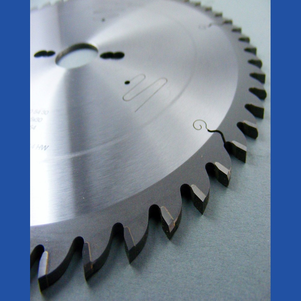 54 Zähne aus einem speziell auf diese Anwendung abgestimmten Hartmetall sorgen für eine hohe Schnittqualität und Standzeit. Dabei wechseln sich Flach- und Trapezzähne ab, zunächst schneidet die Mitte des etwas vorstehenden Trapezzahns, danach schneidet der Flachzahn die Kanten.