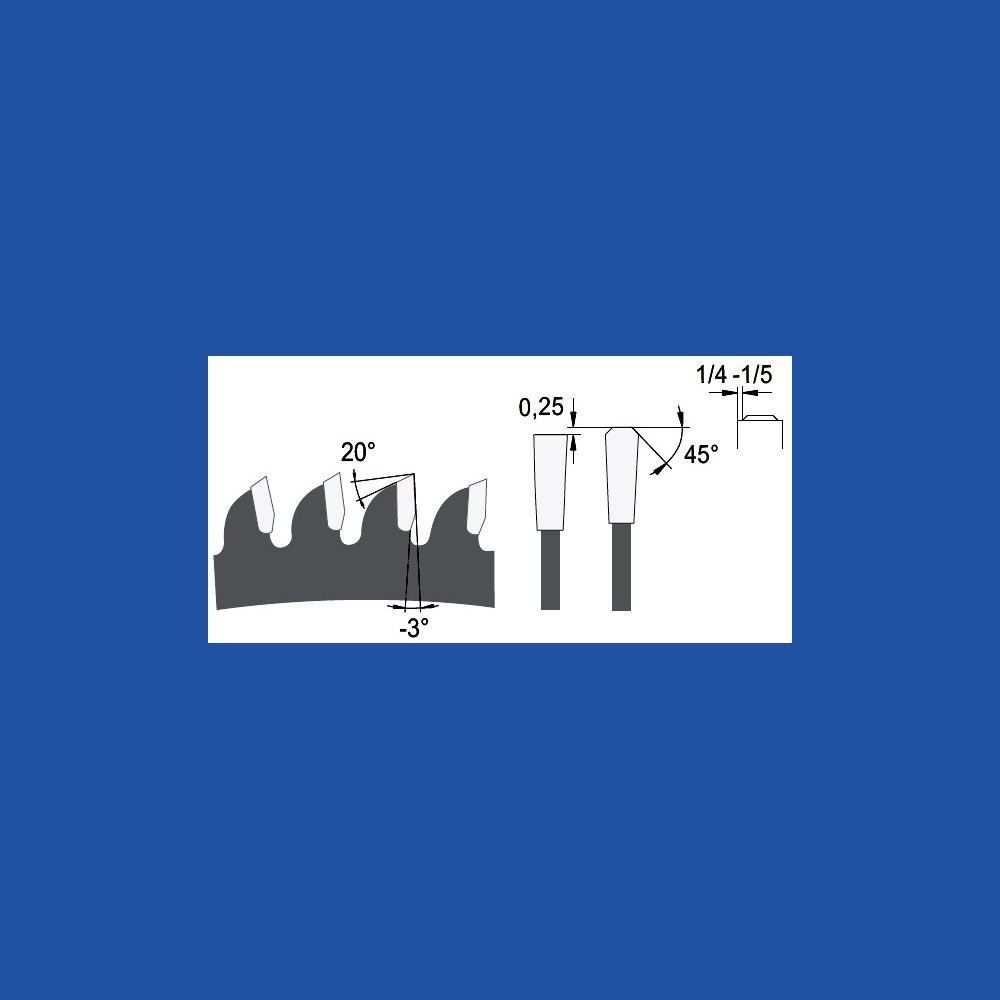 Die Negativ-Ausführung (die Zähne sind 3° nach hinten geneigt) eignet sich für Tisch- und Formatkreissägen auch mit manuellem Vorschub sowie für Hand- und Kappkreissägen.