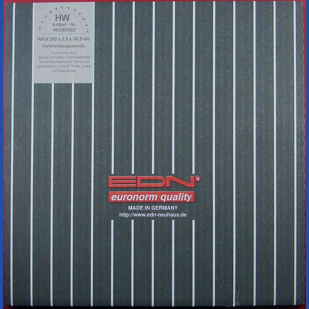 Die Ernst D. Neuhaus GmbH & Co. KG ist ein im Wuppertaler Stadtteil Cronenberg ansässiges Traditionsunternehmen, dessen Focus auf der Produktion hochwertiger Hartmetall-bestückter Kreissägeblätter für den gewerblichen Bereich liegt. Die Marke EDN steht konsequent für Qualität "Made in Germany". Aus einem kleinen Restposten kann ich Ihnen eine Reihe von Sägeblättern dieses Herstellers günstig anbieten! Außerdem nehme ich nach der Schließung von H.O. Schumacher+Sohn jetzt auch diverse Kreissägeblätter in mein reguläres Sortiment auf, liefern kann ich auf Anfrage das Gesamtprogramm (Katalog ohne Preise als PDF-Datei).