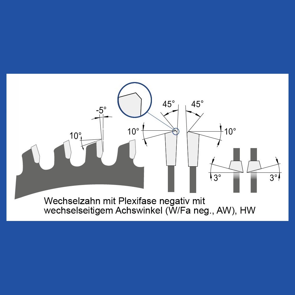 Zahnform | Wechselzahn mit Fase und Achswinkel |