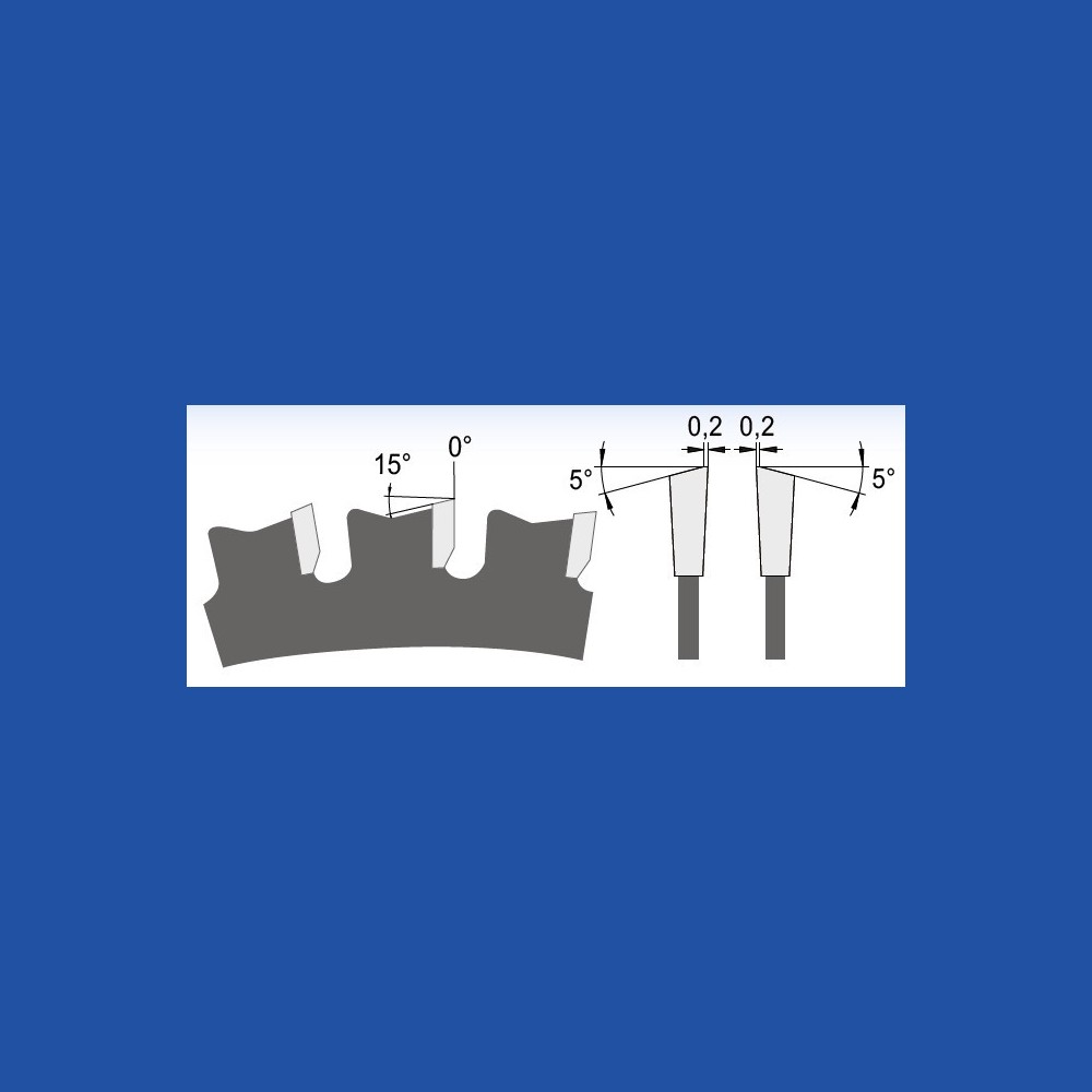 Schnittbreite 2,2 mm Stammblattstärke 1,8 mm 80 Zähne, Zahnteilung 11,97 mm Wechselzahn mit Flachfase neutral Spanwinkel 0°, Freiwinkel...