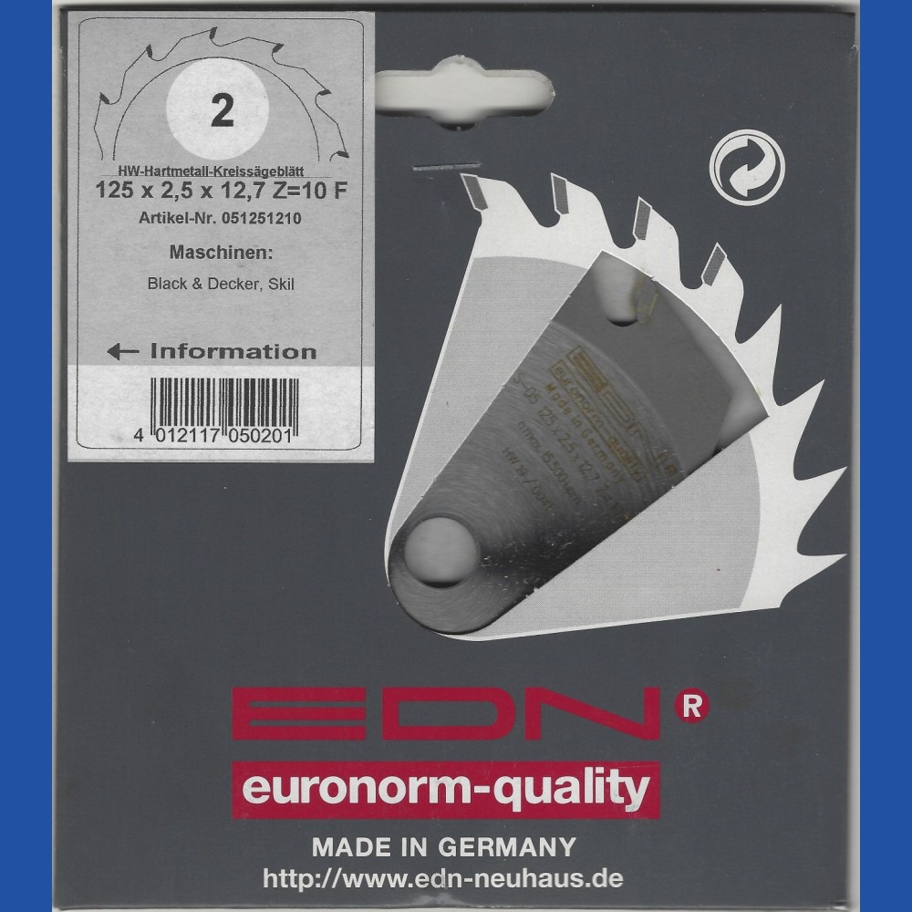 Die Ernst D. Neuhaus GmbH & Co. KG ist ein im Wuppertaler Stadtteil Cronenberg ansässiges Traditionsunternehmen, dessen Focus auf der Produktion hochwertiger Hartmetall-bestückter Kreissägeblätter für den gewerblichen Bereich liegt. Die Marke EDN steht konsequent für Qualität "Made in Germany". Aus einem kleinen Restposten kann ich Ihnen eine Reihe von Sägeblättern dieses Herstellers günstig anbieten! Außerdem nehme ich nach der Schließung von H.O. Schumacher+Sohn jetzt auch diverse Kreissägeblätter in mein reguläres Sortiment auf, liefern kann ich auf Anfrage das Gesamtprogramm (Katalog ohne Preise als PDF-Datei).