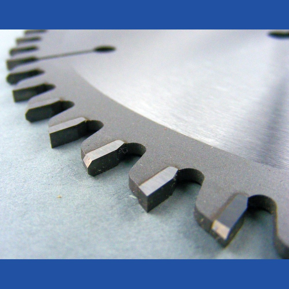 64 Zähne aus einem speziell auf diese Anwendung abgestimmten Hartmetall sorgen für eine hohe Schnittqualität und Standzeit. Dabei wechseln sich Flach- und Trapezzähne ab, zunächst schneidet die Mitte des etwas vorstehenden Trapezzahns, danach schneidet der Flachzahn die Kanten.