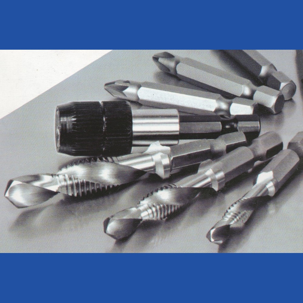 6 Kombi-Gewindebohrer-Bits lang HSS M3x0,5, M4x0,7, M5x0,8, M6x1, M8x1,25 und M10x1,5 mm 5 Bits lang, S4, S5, PH1,...