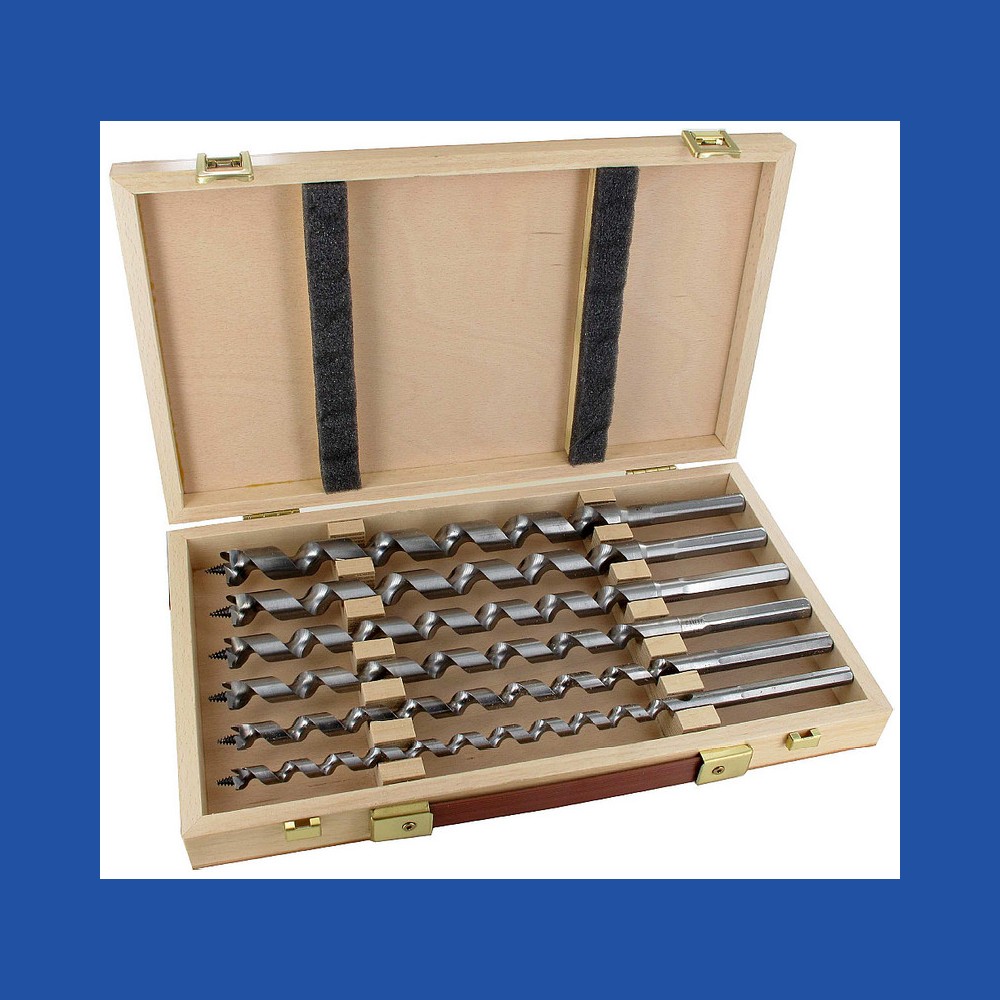 6 Bohrer, Ø 10, 12, 14, 16, 18 und 20 mm in Holz-Kassette Gesamtlänge 320 mm, Arbeitslänge 255 mm Sechskantschaft in Bohrergröße, maximal 13 mm...