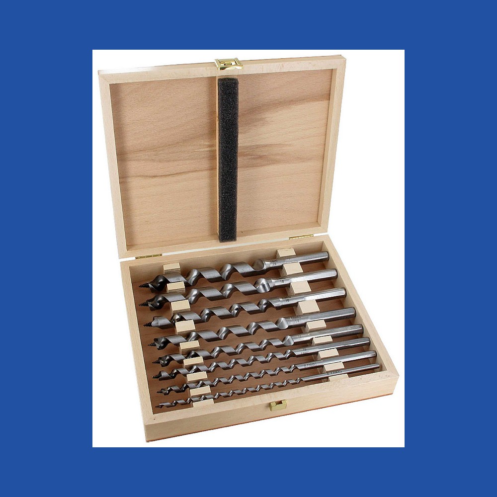 8 Bohrer, Ø 6, 8, 10, 12, 14, 16, 18 und 20 mm in Holz-Kassette