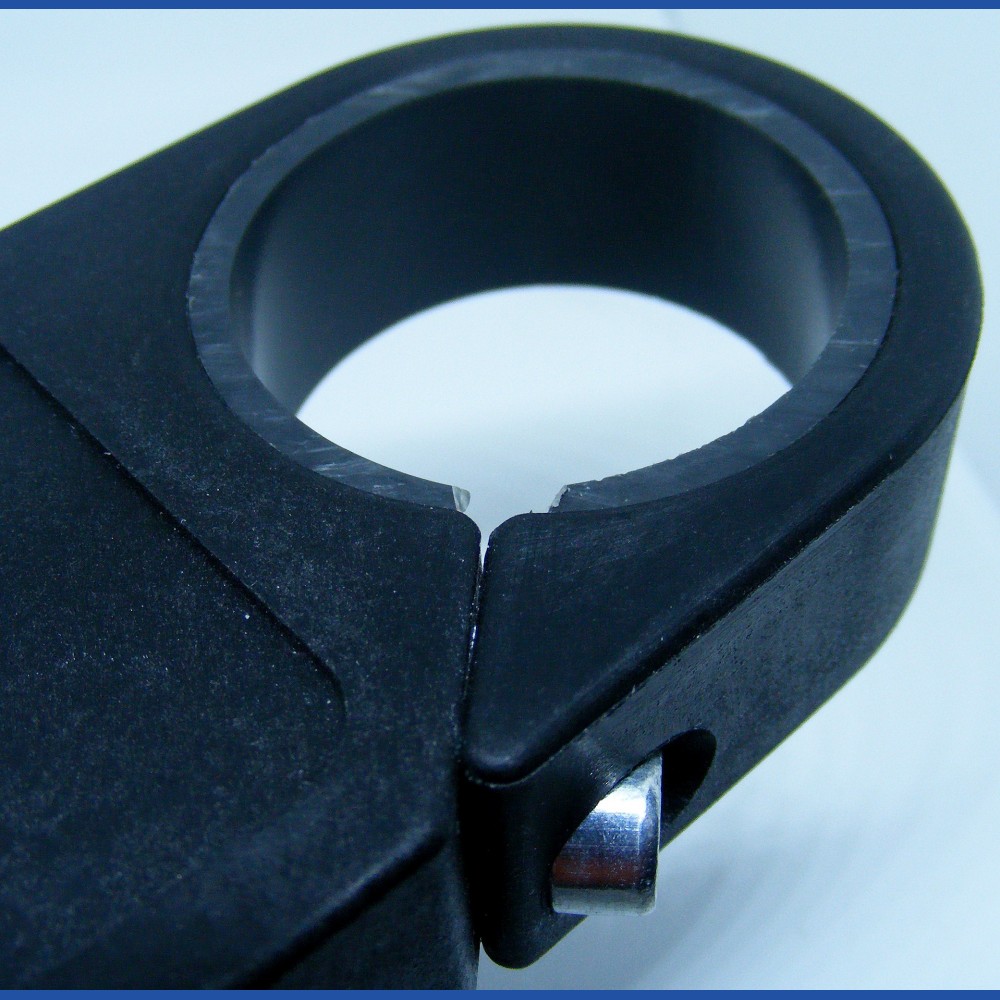 ca. 19 mm breiter, offener Ring aus festem und stabilen, ca. 2,5 mm starkem Hart-PVC, nach außen federnd zum Einspannen von Bohrmaschinen mit 38...